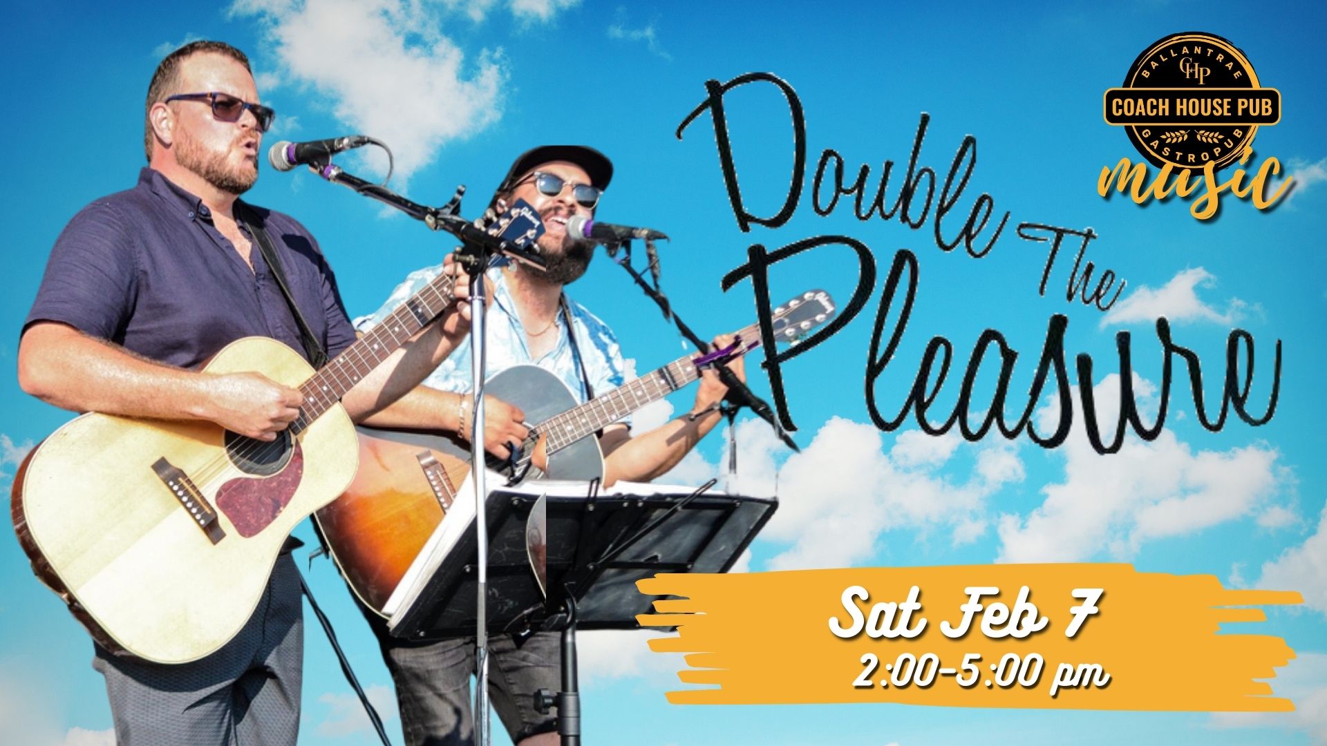 Come join the fun as 'Double the Pleasure' rocks the Coach House Pub on Saturday February 7 from 2:00 until 5:00 pm